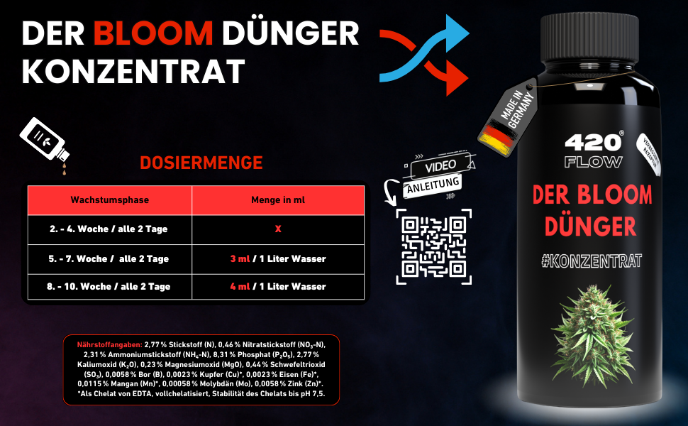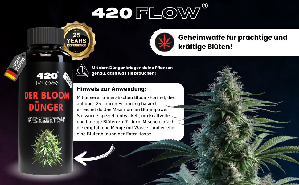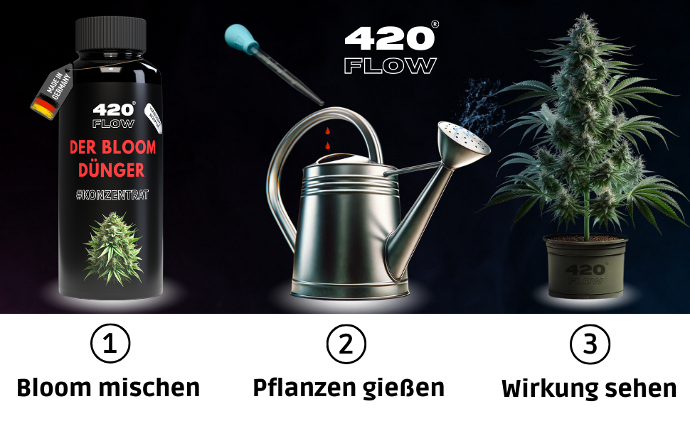 Für maximale Ergebnisse zusammen mit 420Flow® Grow (Wachstumsphase) und 420Flow® Booster (Endblüte & Harzentwicklung) verwenden.