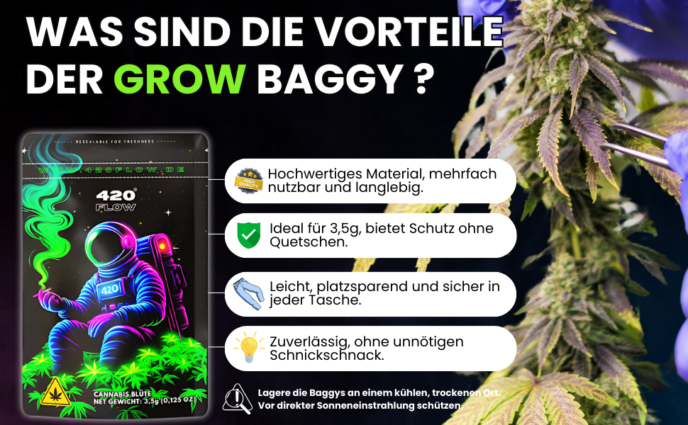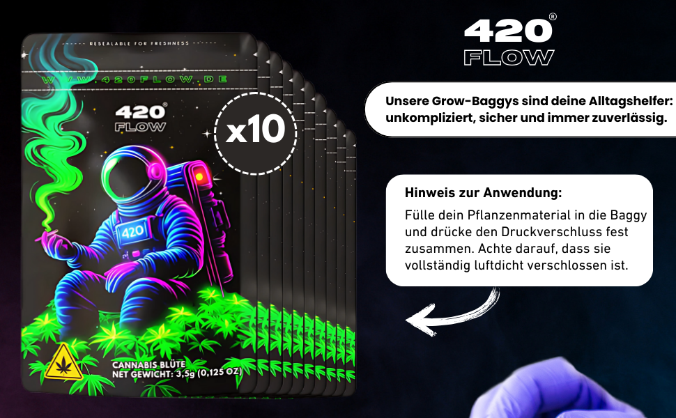 Die 10x Grow Baggys reichen für insgesamt 35 g Cannabis Blüten